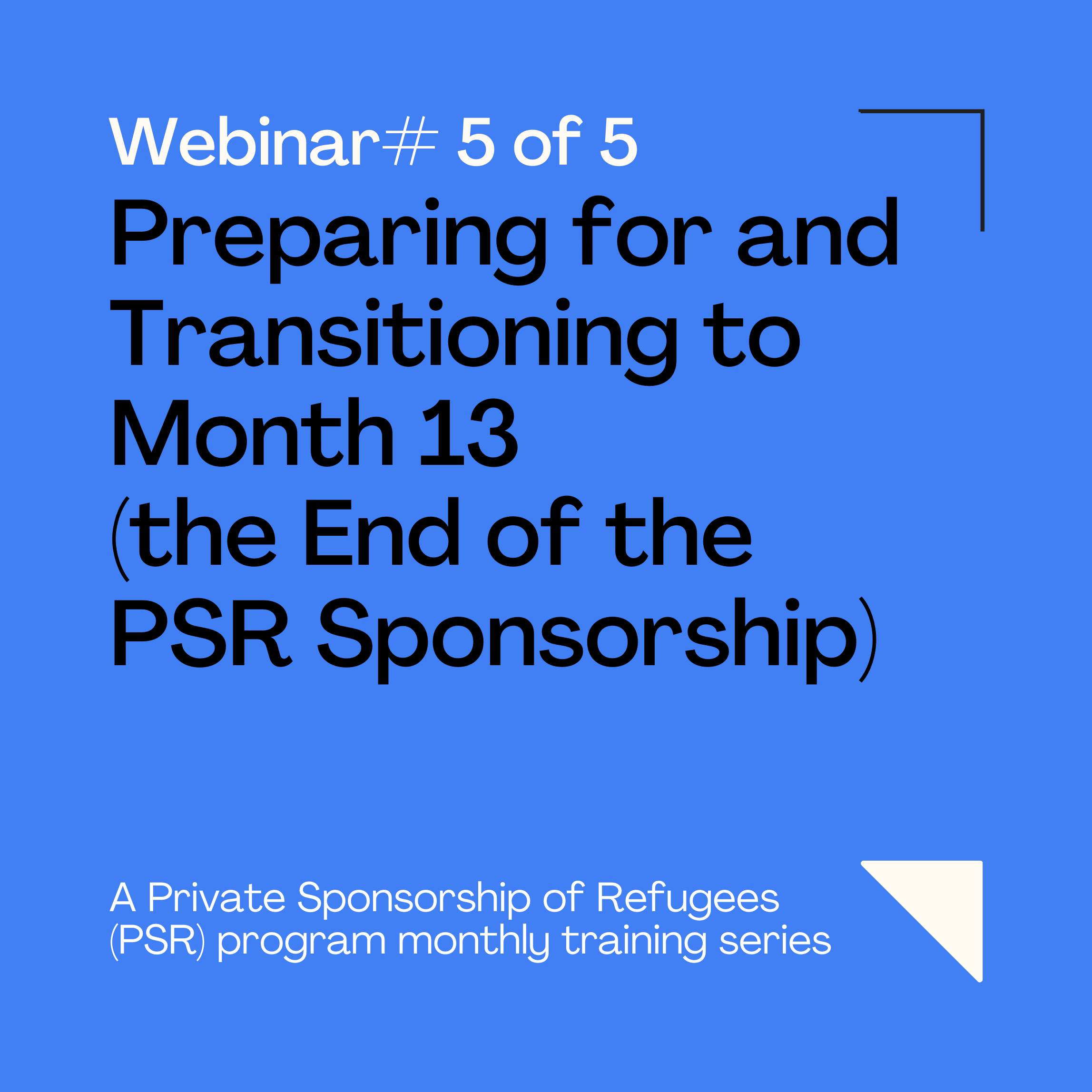 The monthly webinars are a 5-part PSR program webinar series where attendees will learn how to become a PSR refugee sponsor by going through the entire process from A-Z. These webinar series can also be taken as refresher sessions for existing sponsors.
